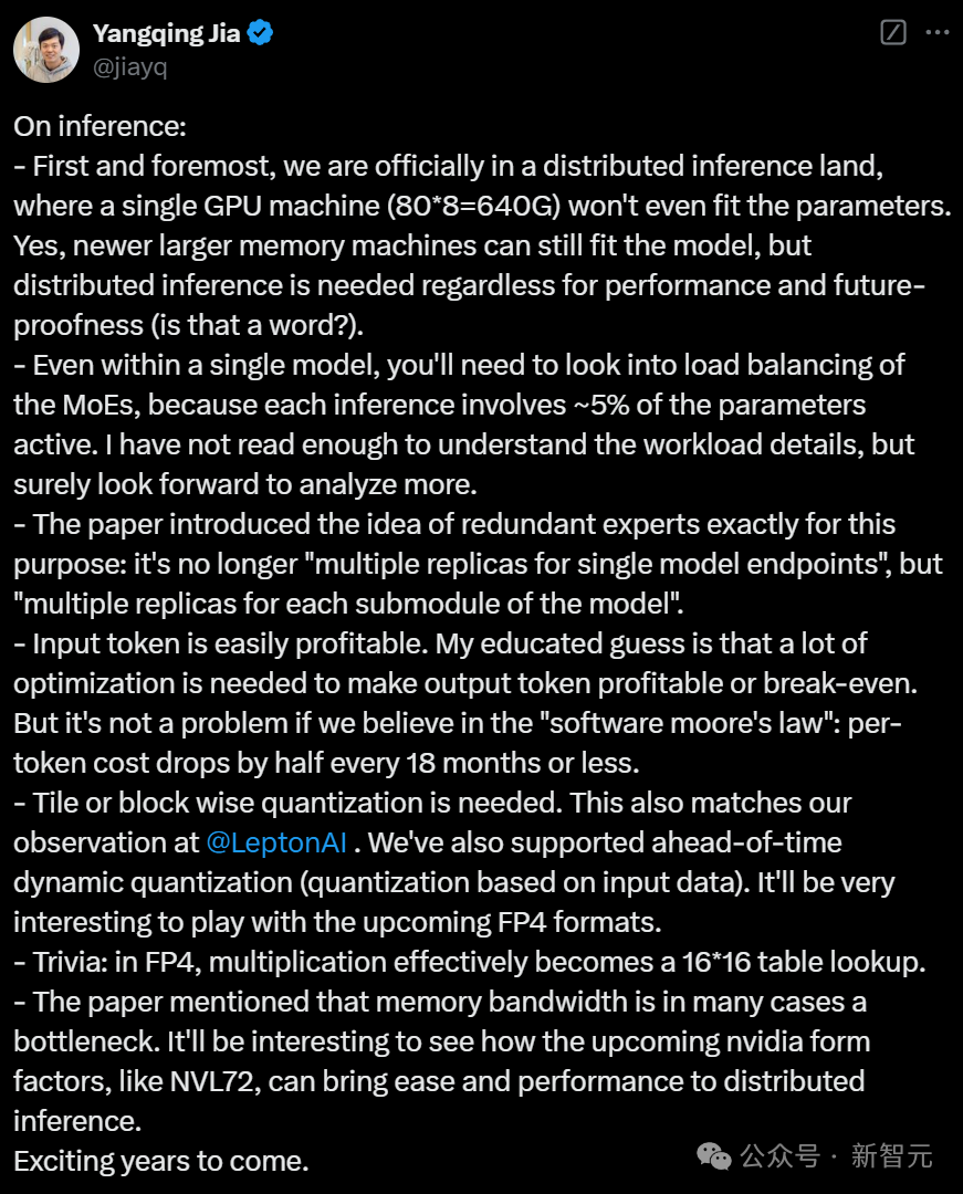 首先最重要的是,我们正式进入了分布式推理时代。一台单GPU机器(80×8=640G)的显存已经无法容纳所有参数。虽然更新大显存机器确实可以装下模型,但不论如何,都需要分布式推理来保证性能和未来扩展。