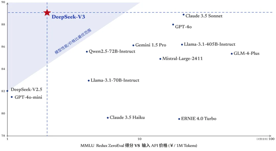 上一代模型Deepseek-V2.5的价格是,输入:0.14美元/百万Token,输出为:0.28美元/百万Token,加总成本是0.14+0.28=0.42美元,大约3元人民币。