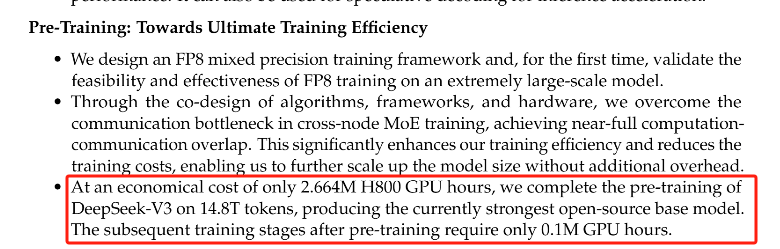 在预训练阶段,模型每训练1万亿token仅需要180K个GPU小时,即在配备2048个GPU的集群上只需3.7天,也就是说,该阶段团队使用2048块H800 GPU训练了模型不到2个月便达成目标;
