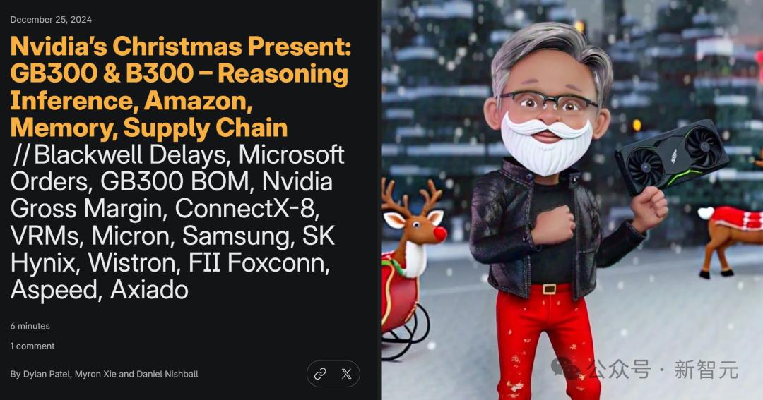 【导读】英伟达的圣诞大礼包曝光,最强B300、GB300算力和显存直接提高50%,模型推理训练性能史诗级提升,同时还打破了利润率下降的魔咒。