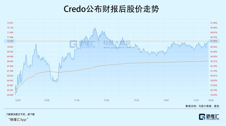 Credo提供的是高速连接线材,近期大火的AEC是其主要产品。在月初公布的财报中,公司即表示AEC已经在下游AI领域放量,佐证了科技大厂对于高速线缆的旺盛需求。业绩公布后次日,公司市值一天就涨近50%。