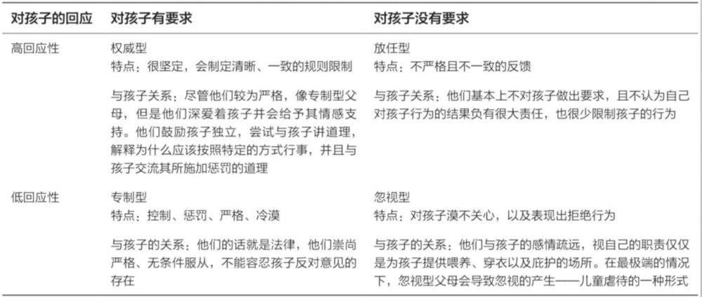 四种类型的父母,费尔德曼《发展心理学》(2007)