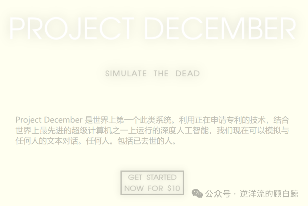 Project December公司允许用户提交信息来模拟一个人物,官网页面甚至特别注明了可以模拟死亡的人,该项目基于GPT-3训练的模型。2020年一名加拿大男子提交了死去妻子的信息之后,与模型模拟的亡妻产生了非常深度的情感联结,影响了他的现实生活。