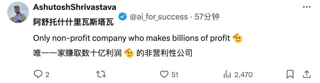 许多网友直接在评论区贴脸输出,表示这可能是史上唯一一家年入数十亿美元的「非营利」组织。