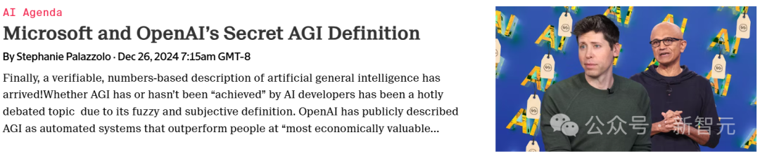昨天,OpenAI被曝料在与微软的交易中,将AGI定义为「在最具经济价值的任务上超越人类的AI」,还设定了至少1000亿美元投资者回报的利润目标。