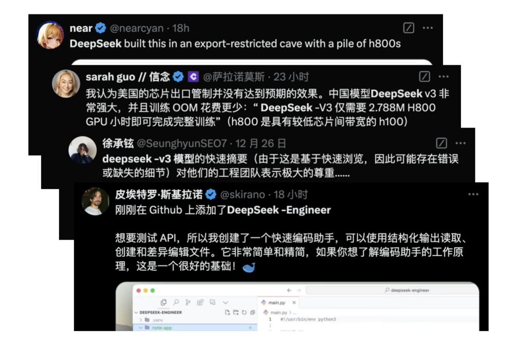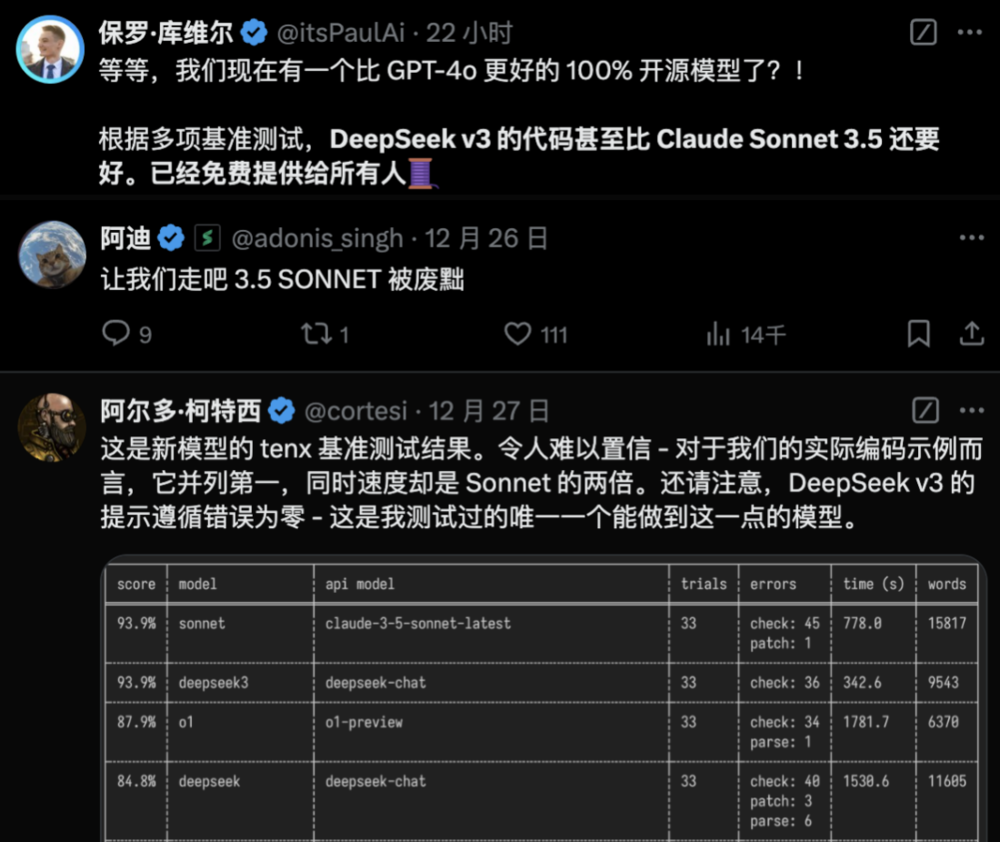 不少玩家还在X上分享了自己的使用体验,认为DeepSeek-V3 很“聪明”,并对Deepseek团队表示极大的尊重。