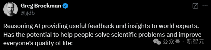 Greg 转发了这条长帖,并说道:「推理型 AI 提供了有价值的反馈和洞察,帮助全球专家解决科学问题,并有潜力改善每个人的生活质量。」