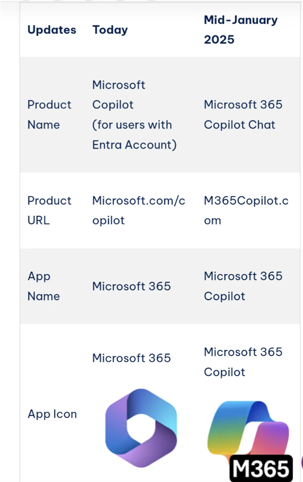 新的应用图标将采用Copilot色彩鲜艳的设计,包含蓝色、黄色、粉色和紫色,并在底部添加了“M365”字样。