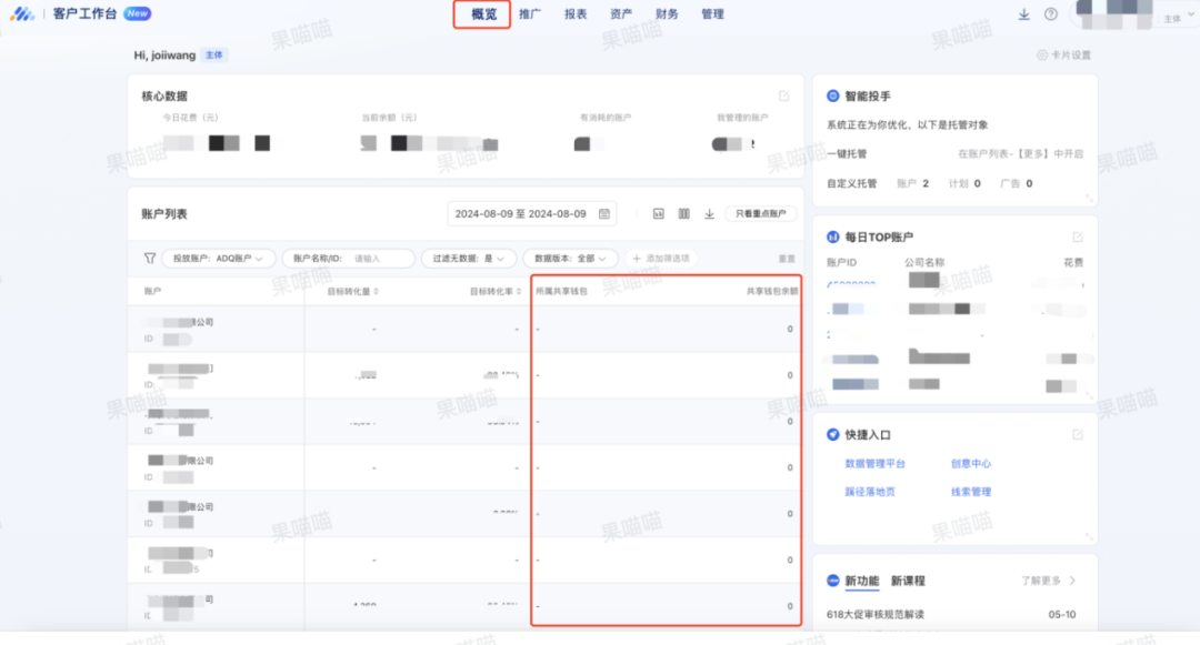 如果说共享钱包可以为优化师、服务商提升效率,那客户工作台能加快多账户协作效率、解决商家管理低效的问题。