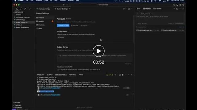 AI编程神器Cursor也能跟DeepSeek V3结合,来看一个做贪吃蛇的案例: