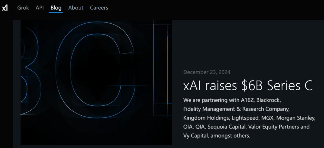 在xAI公开的两次融资,金额和阵容都令业界震惊。今年5月,xAI宣布完成史上最大的一笔B轮融资,金额达到60亿美元(420亿人民币),主要投资方包括特斯拉和SpaceX的首批投资机构Valor Equity Partners、迪拜的“神秘”投资公司Vy Capital、硅谷风险投资公司Andreessen Horowitz、红杉资本(Sequoia Capital)、沙特王国控股公司Kingdom Holding等。完成融资后,xAI的估值达到240亿美元(1680亿人民币)。