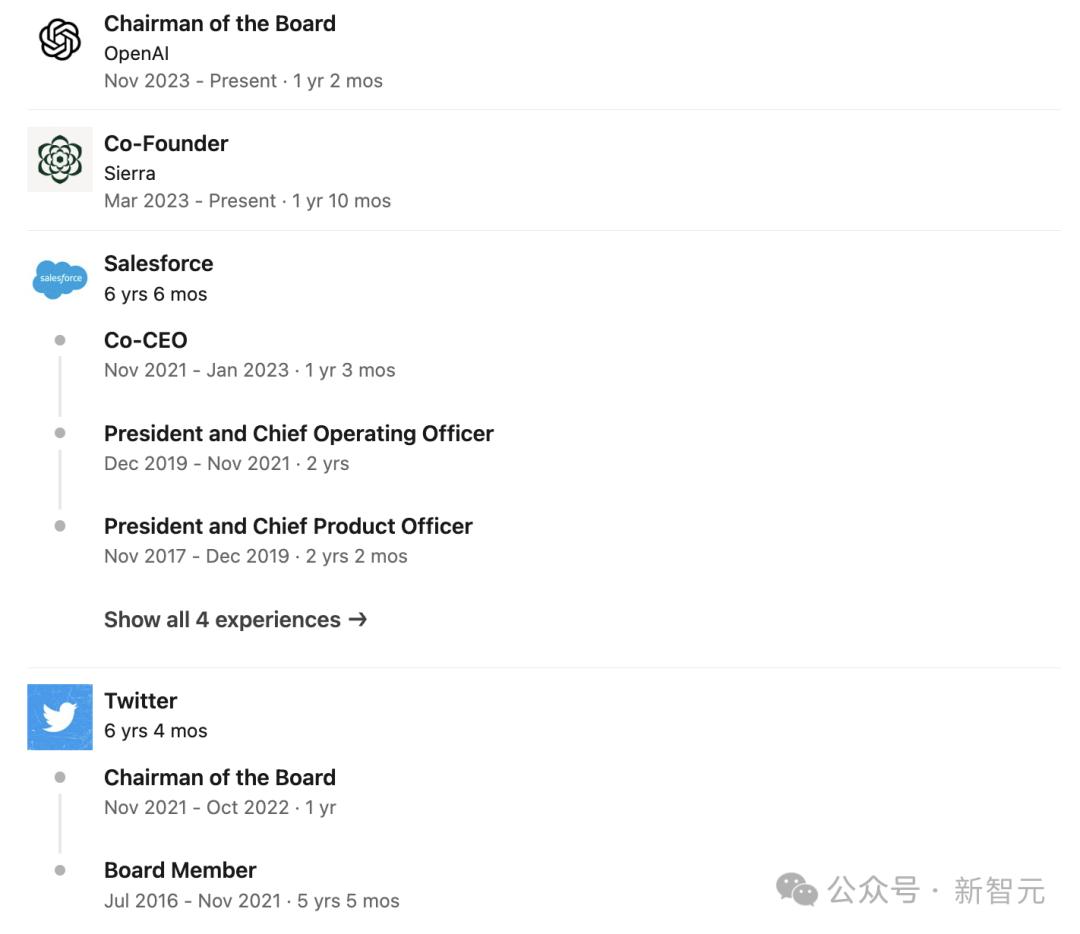 目前,他还是Sierra的联合创始人,曾在Salesforce已担任6年联合CEO,在推特任职董事会成员5年多。
