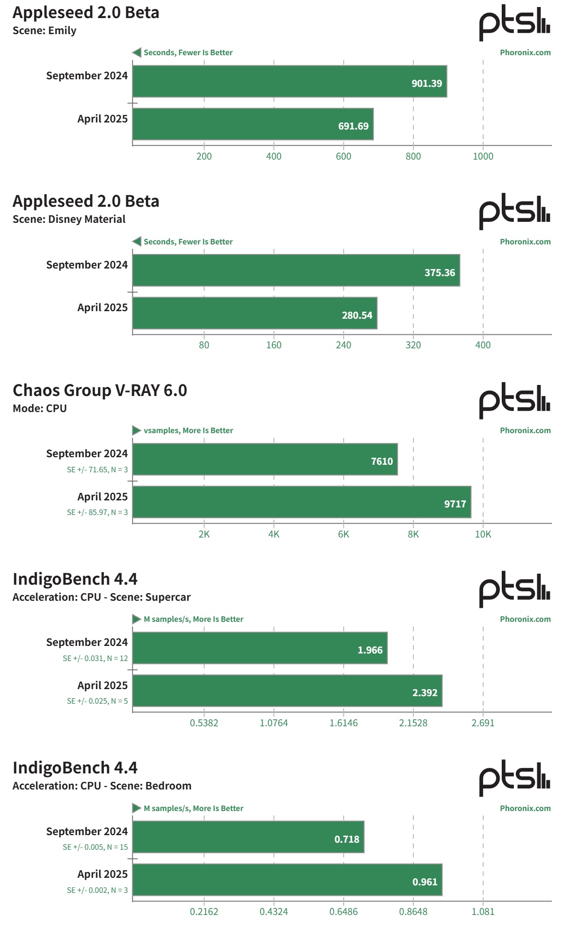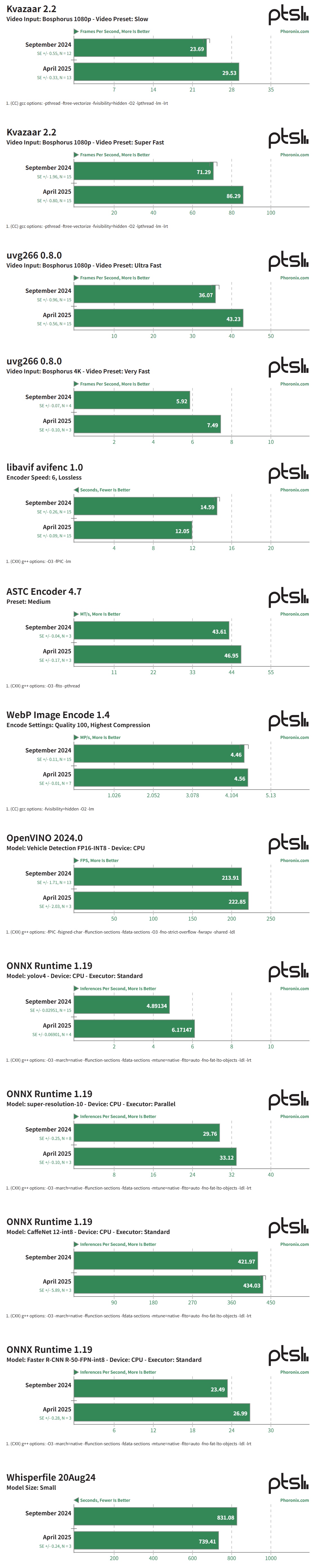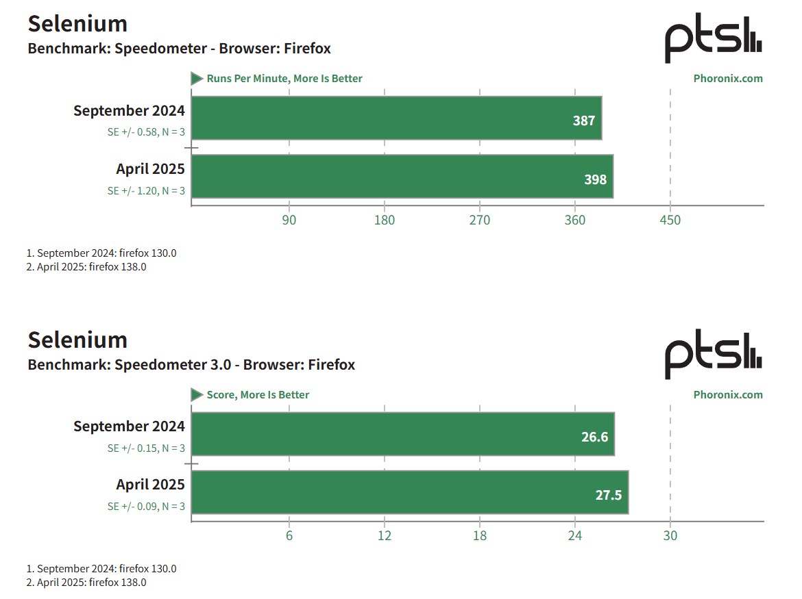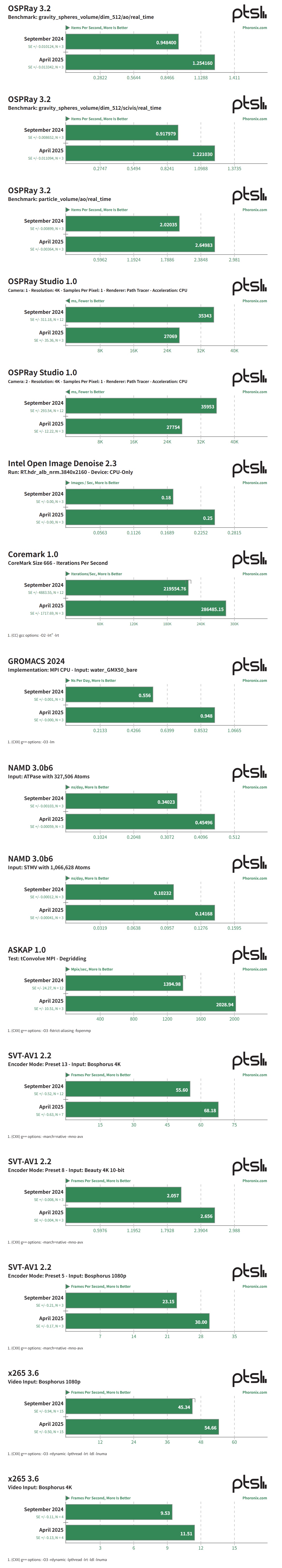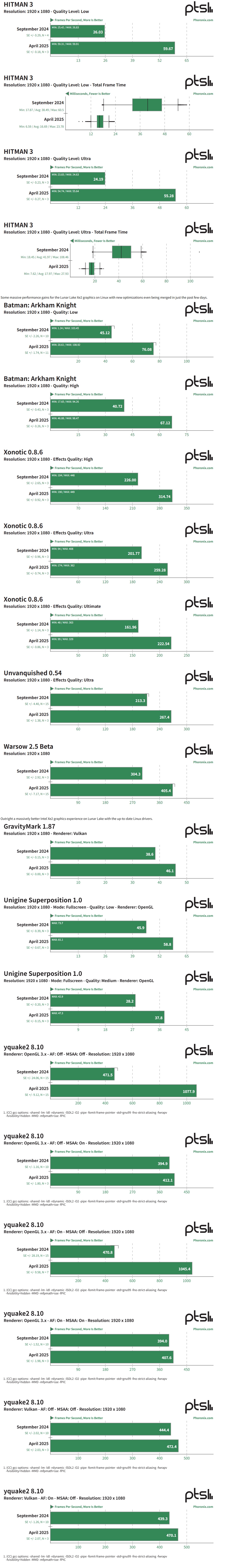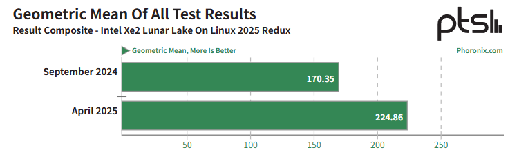 去年九月,Phoronix 在 Ubuntu 24.10(IT之家注:Linux 6.11 内核及 Mesa 24.3-devel)上对其进行了测试,现在又通过 Ubuntu 25.04(Linux 6.14 内核和 Mesa 25.2-devel)进行了测试。结果如下: