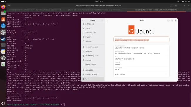 华硕 Zenbook S14 搭载了 8 核的酷睿 Ultra 7 256V 处理器,配备 16GB 内存,兼容 Fedora Workstation 42 和 Ubuntu 25.04 等 Linux 发行版。
