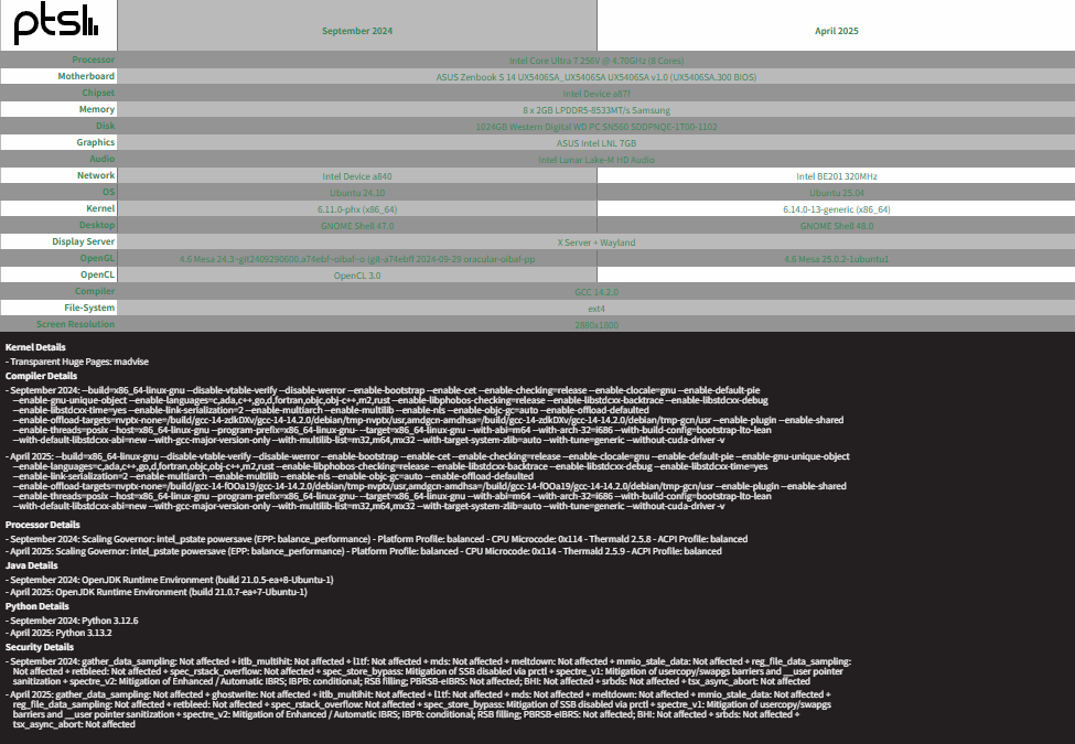 IT之家 5 月 17 日消息,Phoronix 测试发现,搭载英特尔 Lunar Lake 酷睿 Ultra 7 256V 处理器的华硕 Zenbook S14 在 Ubuntu 系统上的综合性能较去年 9 月首发时实现显著跃升。