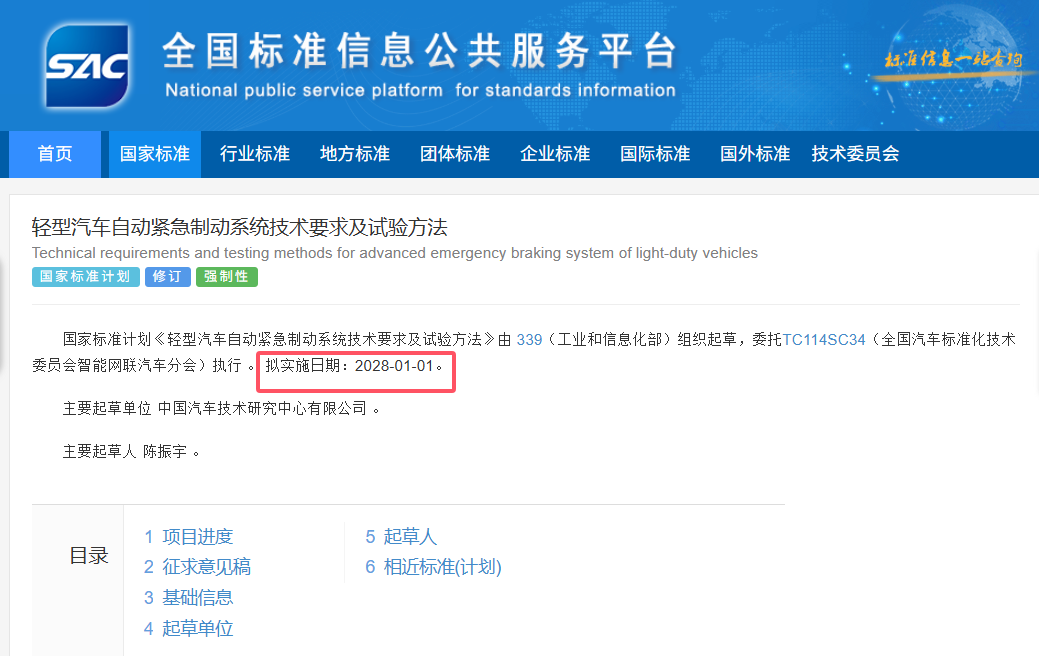 近日,工信部网站发布《轻型汽车自动紧急制动系统技术要求及试验方法》征求意见稿,征求意见截止日期为2025年6月30日。