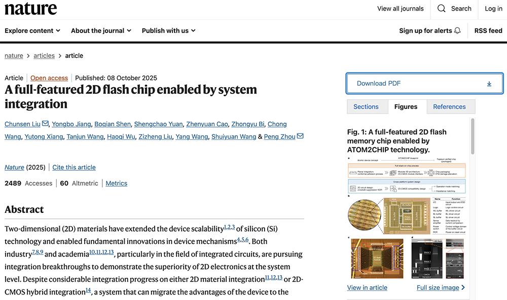 论文题目为《全功能二维-硅基混合架构闪存芯片》。复旦大学集成电路与微纳电子创新学院、集成芯片与系统全国重点实验室研究员刘春森和教授周鹏为论文通讯作者,刘春森研究员和博士生江勇波、沈伯佥、袁晟超、曹振远为论文第一作者。
