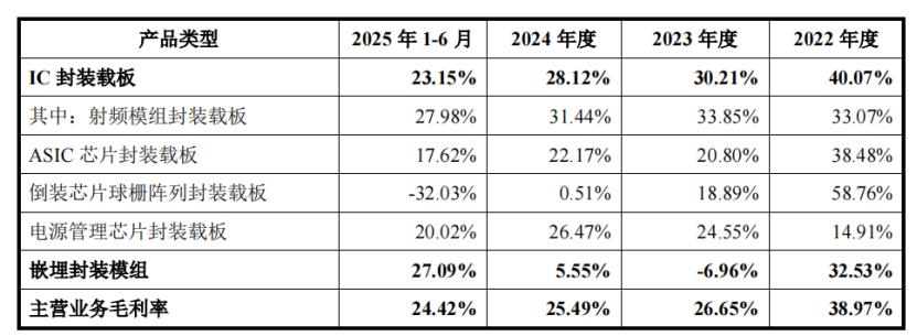 2024年和2025年1-6月,受消费类等应用市场竞争、下游市场需求等影响,射频模组封装载板、倒装芯片球栅阵列封装载板等产品销售价格下降。