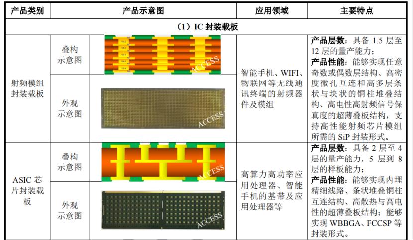 其中,IC封装载板产品主要包括射频模组封装载板、ASIC芯片封装载板、电源管理芯片封装载板和倒装芯片球栅阵列封装载板。
