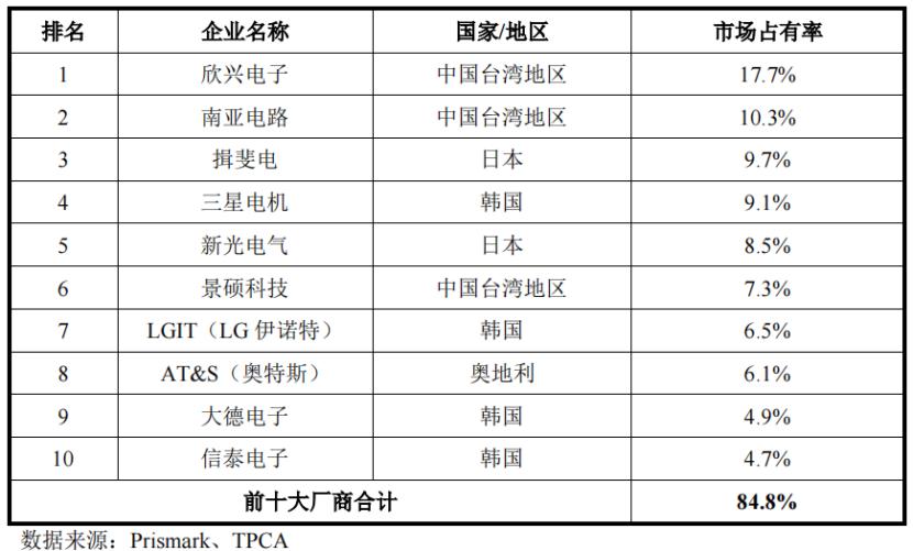 2023年全球前十大封装载板厂商,来源:招股书