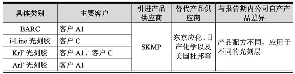 其引进光刻材料相关产品均系替代美日厂商同类产品,满足了境内晶圆厂关键材料的替代需求。