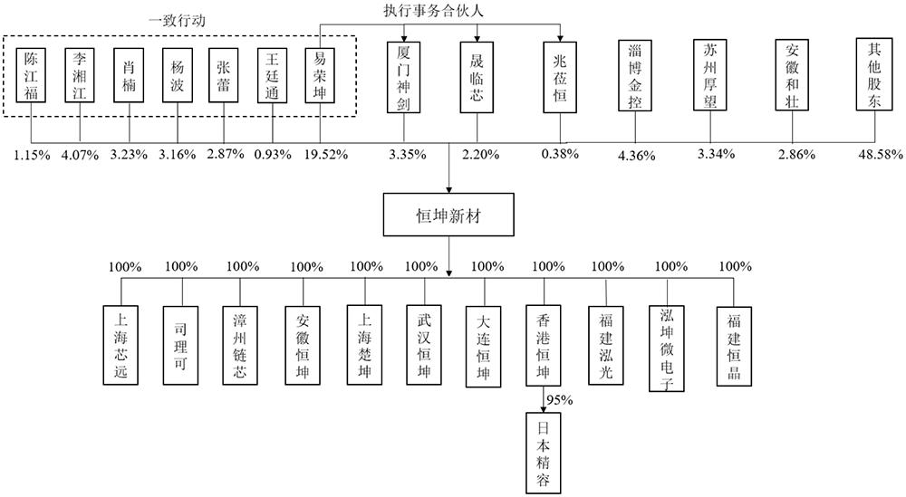 截至招股书签署日,恒坤新材法定代表人、董事长、总经理易荣坤合计控股40.87%,是恒坤新材的控股股东、实际控制人。