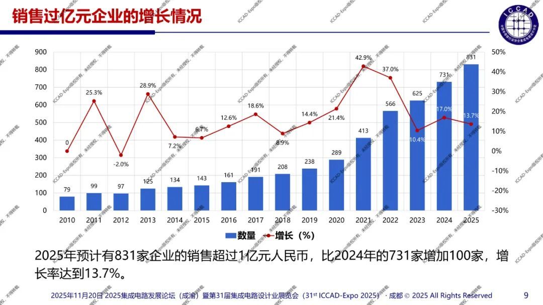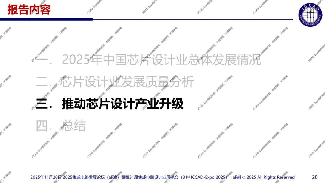 11月20日,“2025集成电路发展论坛(成渝)暨三十一届集成电路设计业展览会”(ICCAD-Expo 2025)在成都西博城正式拉开帷幕。中国半导体行业协会集成电路设计分会理事长魏少军教授为大会作了题为《技术创新驱动设计产业升级》的主旨报告,以下为报告全文介绍。
