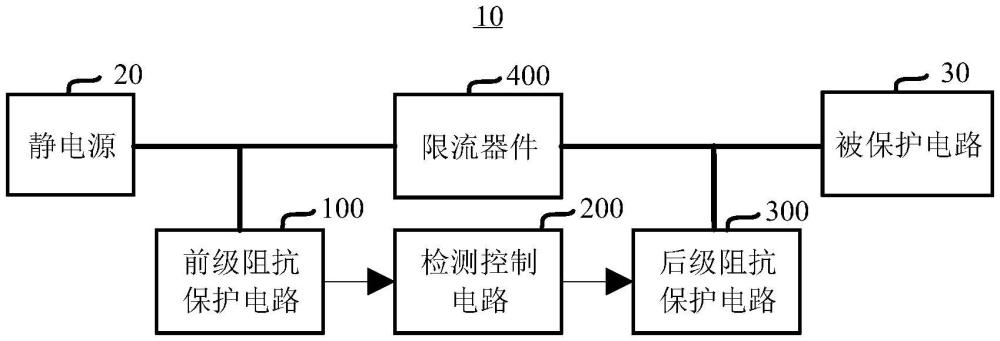 本申请涉及电子电路技术领域,具体地,涉及一种静电阻抗保护电路和电子器件,该静电阻抗保护电路,至少包括:多级阻抗保护电路,相邻两级所述阻抗保护电路之间设置有至少一路检测控制电路,所述多级阻抗保护电路中的最前级阻抗保护电路的输入端与静电源电连接,所述多级阻抗保护电路中的最后级阻抗保护电路分别与所述静电源和待保护电路电连接;所述检测控制电路用于检测所述前级阻抗保护电路的输出电压,后级阻抗保护电路在所述输出电压大于预设电压时启动,并对所述静电源的静电电压进行泄放。提供了一种结构简单,成本更低,可实现更低ESD电压的静电阻抗保护电路。