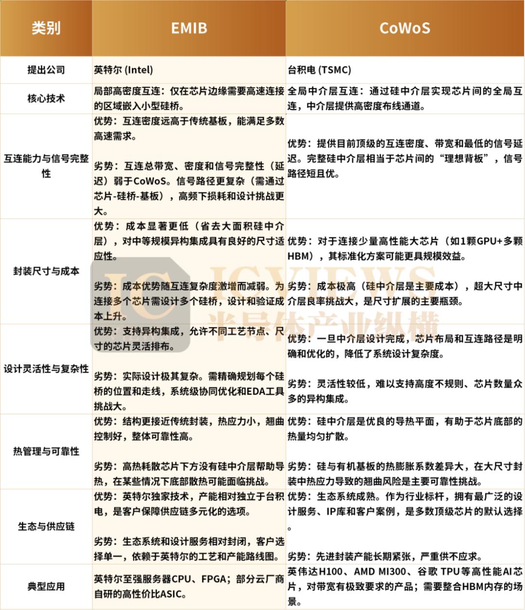 与此同时,EMIB的崛起并不意味着CoWoS的衰落,而是先进封装行业迈入场景化精准匹配的新发展阶段。CoWoS在互联密度和超高频段信号完整性上的优势,仍是英伟达、AMD等高端GPU厂商的核心需求,短期内难以被替代。而EMIB则在ASIC、中端AI芯片等领域或可打开增量空间。