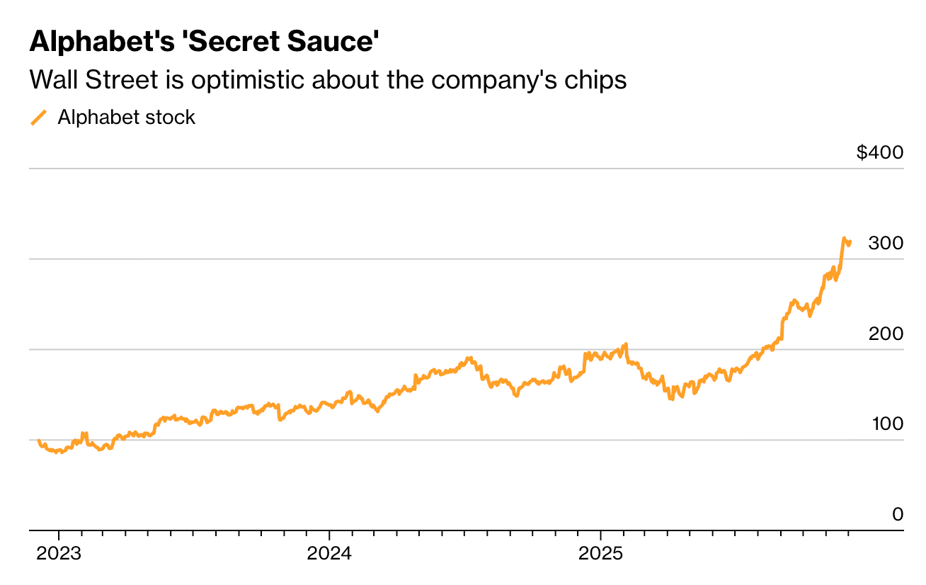 今年10月底,Alphabet宣布将向AI创业公司Anthropic提供价值数百亿美元的芯片,推动其股价在两天内大涨超6%。一个月后,科技网站The Information又报道称,Meta正就斥资数十亿美元获取TPU芯片进行谈判,这再次推动Alphabet股价飙升。