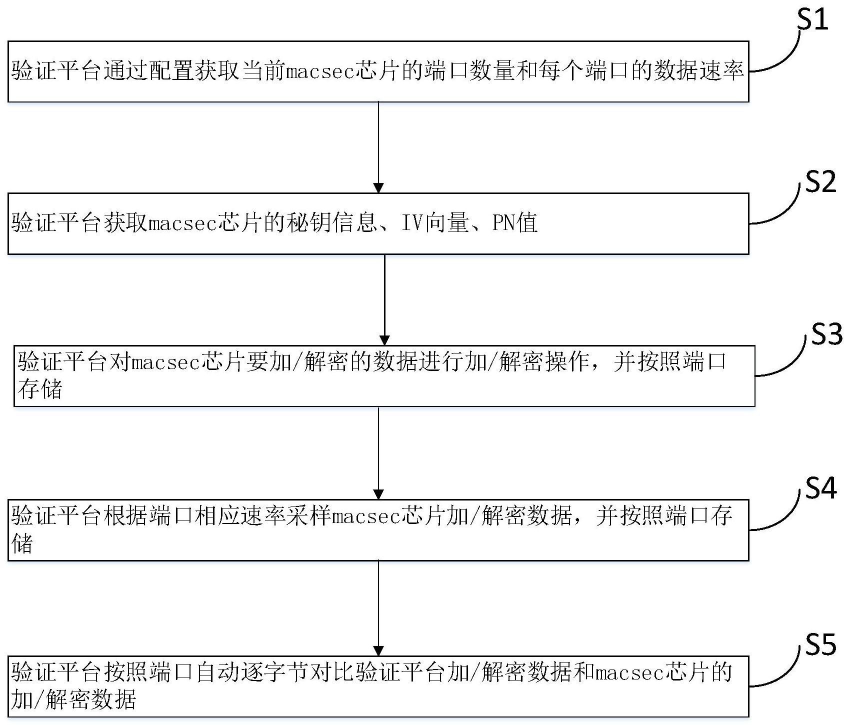 本发明提出了一种macsec速率和端口混合的验证模型的实现方法,验证平台通过配置获取端口对应速率,为不同端口配置不同速率和不同的macsec加密算法的加密秘钥长度,可实现对多种速率和端口的macsec算法的验证,节省仿真时间,提高仿真效率和准确率。