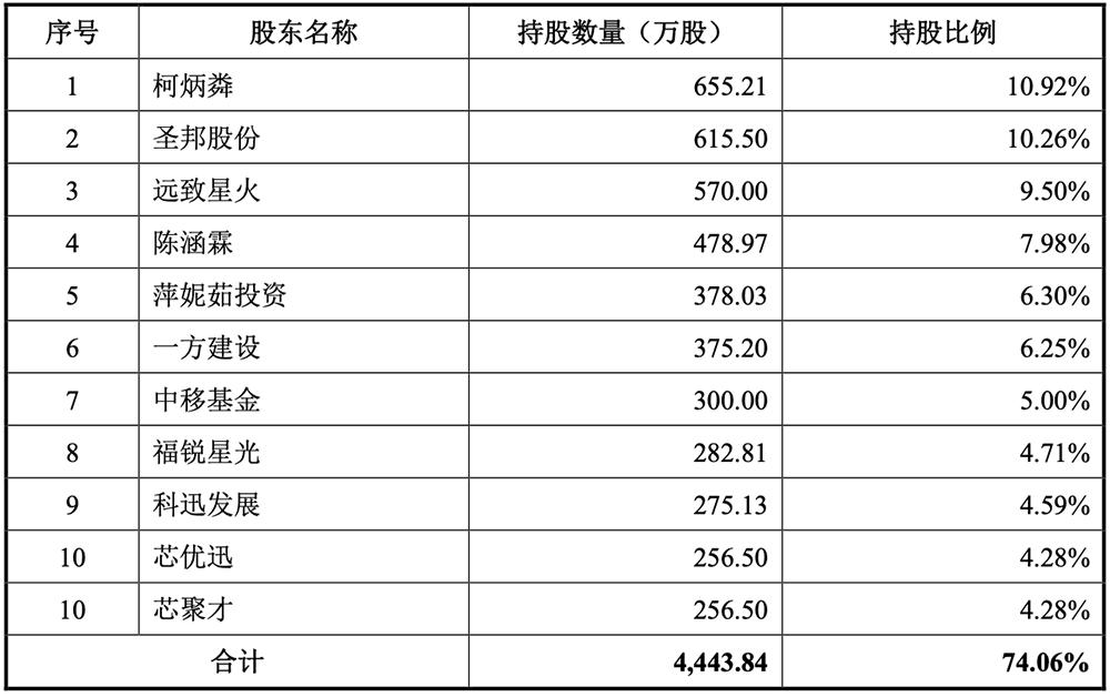 截至招股书签署日,除实际控制人柯炳粦、柯腾隆及其控制的科迅发展、芯优迅、芯聚才、优迅管理外,其他持有优迅股份5%以上股份或表决权的股东为圣邦股份、远致星火、省电产投系基金、蔡春生及一方建设、陈涵霖、萍妮茹投资、龙驹投资系基金、中移基金。