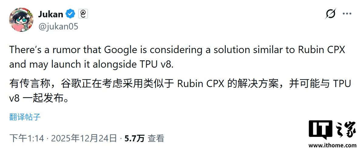 IT之家 12 月 25 日消息,消息源 @jukan05 于 12 月 23 日在 X 平台发布推文,爆料称谷歌高管近期造访了三星位于美国得克萨斯州泰勒市的半导体工厂,双方就外包生产 TPU 事宜展开了谈判。