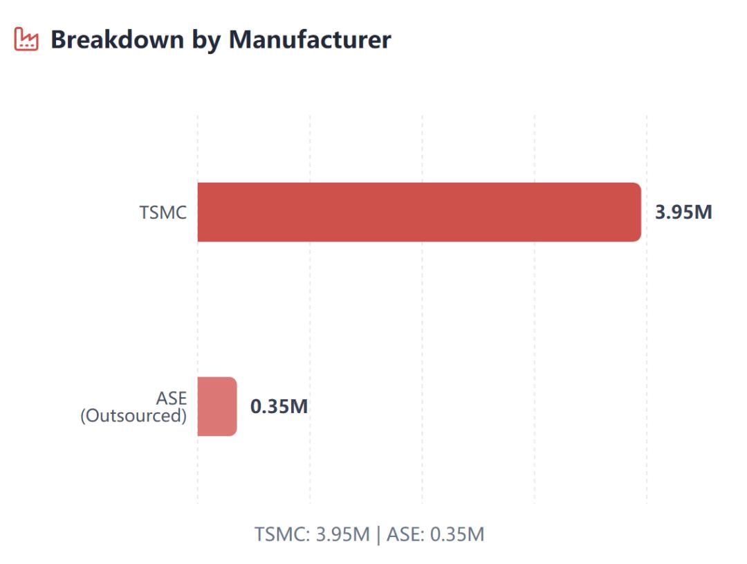 这430万颗TPU芯片,395万颗(92%)由台积电代工,其余35万颗(8%)可能由日月光(ASE)外包。