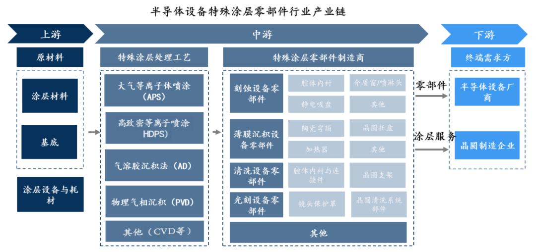 半导体设备特殊涂层零部件贯穿集成电路制造产业链,该公司共有数十款半导体设备特殊涂层零部件产品,覆盖晶圆制造、封装以及硅片制造领域的设备。