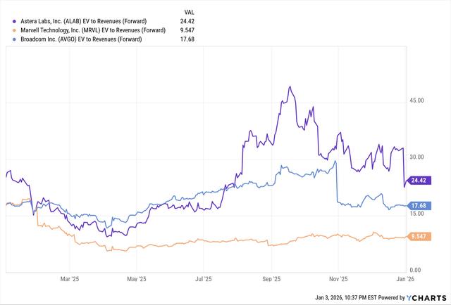 图表 4:Astera Labs 与 Marvell 市销率对比