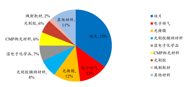 电子特气以其高技术、高附加值的特点,在半导体、液晶显示面板、光伏、LED等电子工业生产中发挥着不可替代的作用。其质量直接影响电子器件的成品率和性能。其中最为引人瞩目的就是半导体领域的应用。电子特气是晶圆制造过程中不可或缺的基础和支撑性原材料,在半导体制造材料中的成本占比约13%,仅次于硅片,对半导体产品性能至关重要。