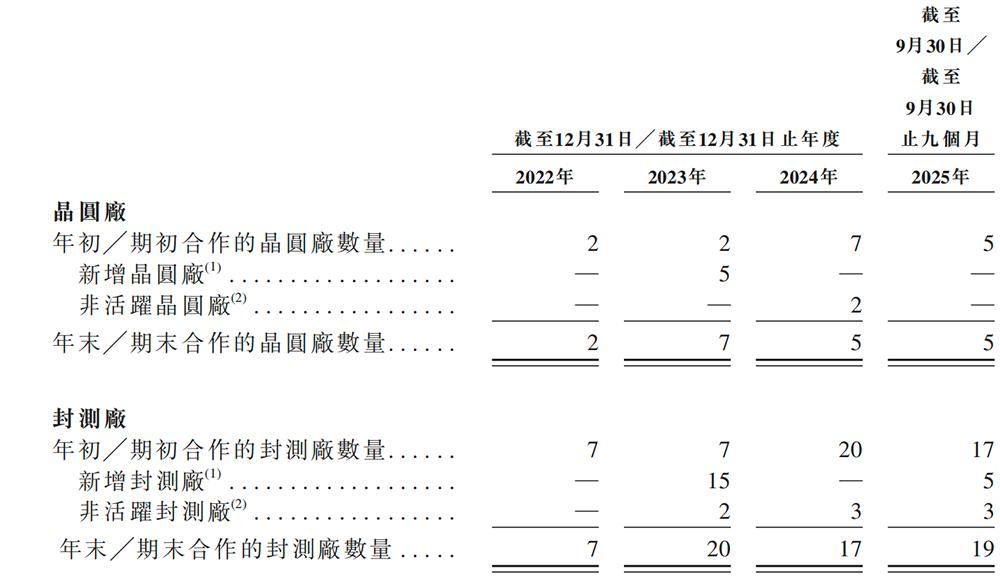 2022年到2025年9月底,爱芯元智与7家晶圆厂及26家封测厂合作,主要来自台湾、江苏及浙江。据灼识咨询告知,AI推理芯片行业有超过150家替代晶圆厂及封测厂。