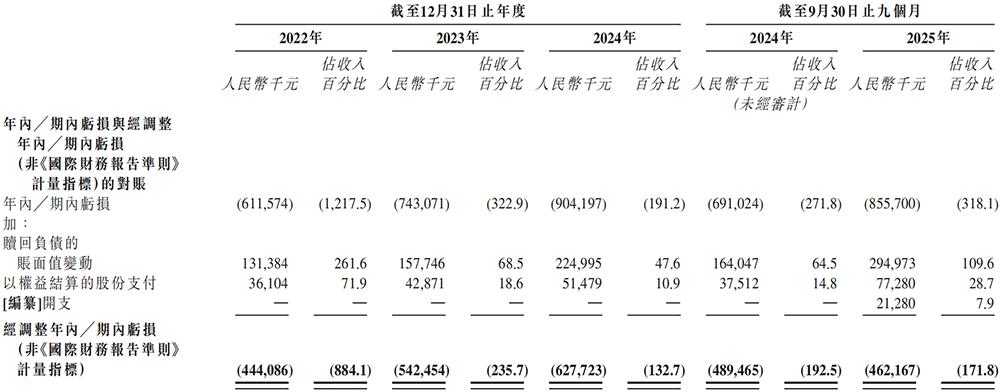 同期,其经调整净利润分别为-4.44亿元、-5.42亿元、-6.28亿元、-4.62亿元,合计为-20.76亿元。