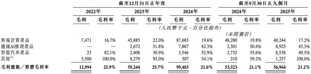 2025年1-9月,其智能汽车产品与边缘计算SoC的销售额实现大幅增长,较2024年同期分别增长约251.4%及272.7%,进一步推升毛利。