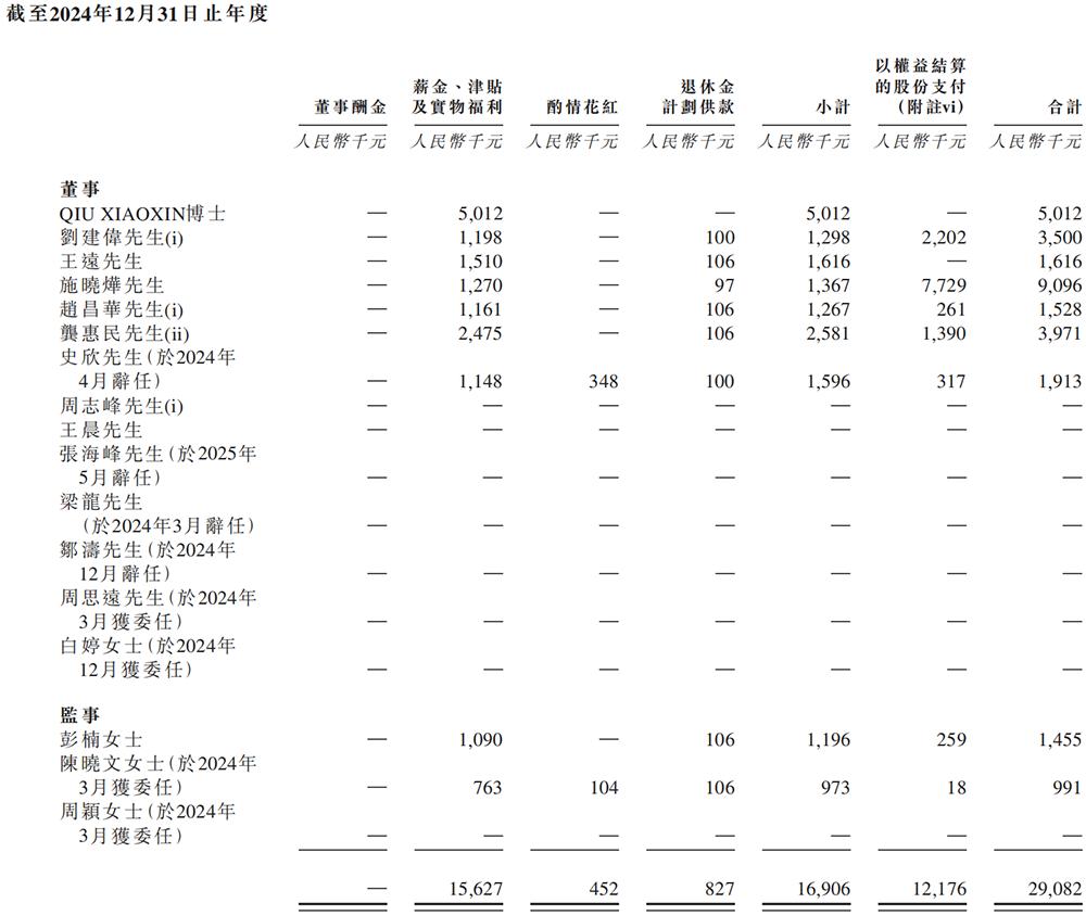 2024年及2025年1-9月,爱芯元智董事及监事酬金如下: