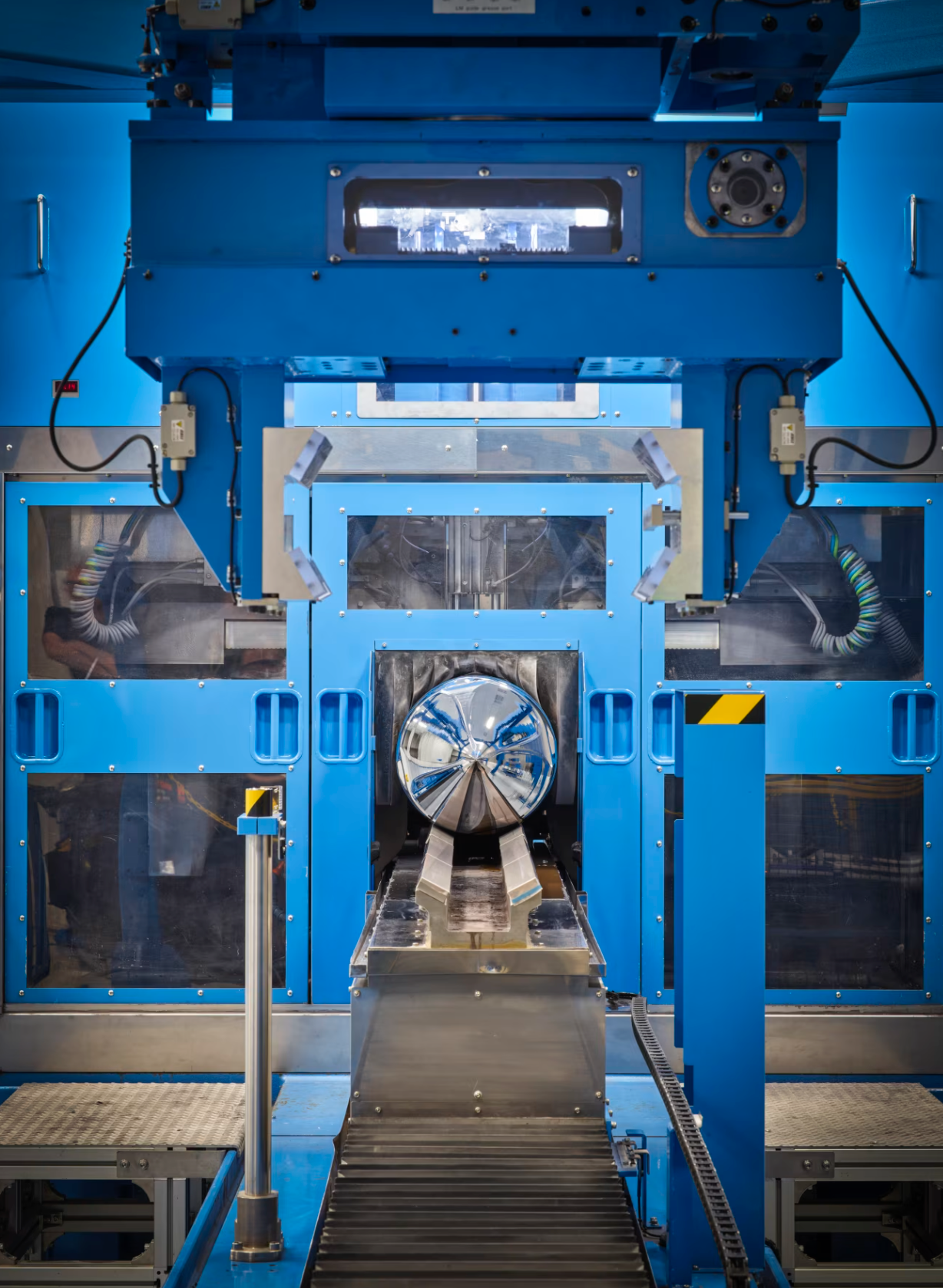 这座占地四分之一英里的工厂以一处颇具数字时代“巨石阵”风格的车间为起点:车间内矗立着35英尺高的设备,用于制造鱼雷形状、重达数百磅的硅锭。这些硅锭随后被切割成晶圆,经过抛光处理,再装入特制的运输容器中,确保其精密的特性不受破坏,随后送往芯片供应链的各个环节。