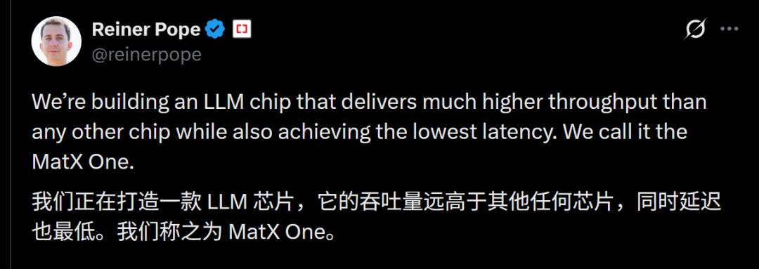而正在孕育的MatX One,毫无疑问便承载着这一理念。