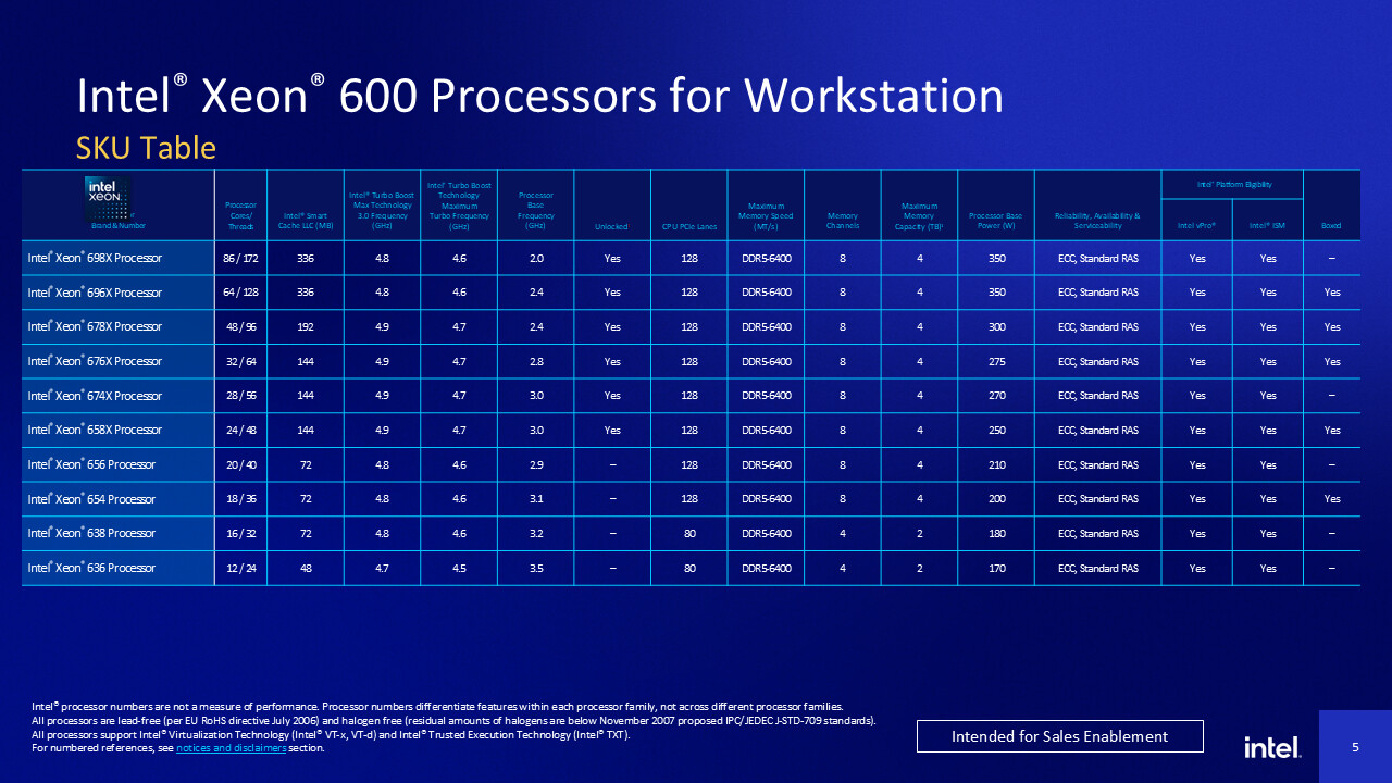 IT之家 3 月 1 日消息,英特尔上月初更新 HEDT 产品线,发布“Granite Rapids-WS”架构至强 600 系列处理器。如今英特尔公布了一份详细频率表,列出该处理器在 SSE、AVX2、AVX-512 等不同负载下的睿频。