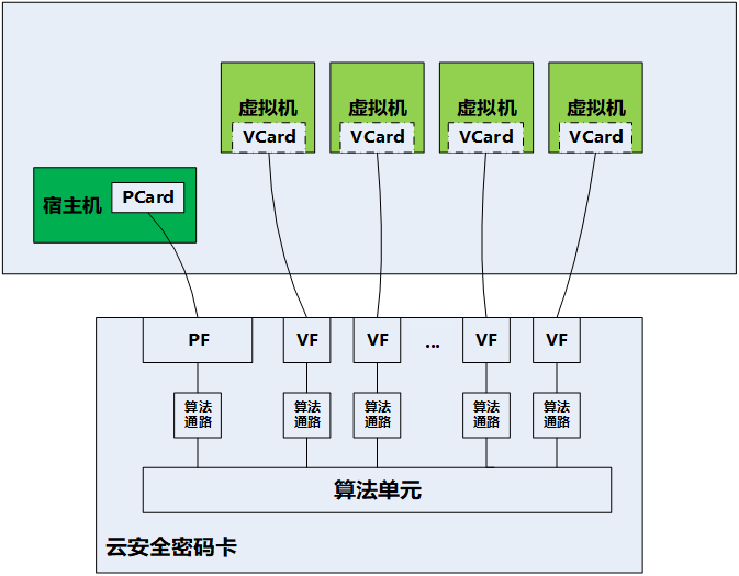 CCUPH2H01和CCUPH3H01 PCI-E 密码卡支持基于硬件的虚拟化技术 SR-IOV:能够应用于Linux+KVM等虚拟机环境,通过 SR-IOV 虚拟化技术不仅实现了硬件资源的高效共享,而且在提升性能的同时降低了多机情况下的成本,增强了安全性。