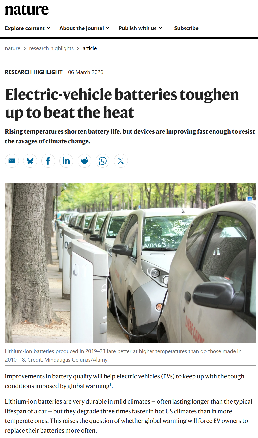 2026年3月6日,《自然》(Nature)杂志将该成果遴选为Research Highlight,并以“Electric-vehicle batteries toughen up to beat the heat”为题进行了亮点评述和推荐。此外,本研究还被全球多国媒体报道超过21次,其中包括欧洲新闻台(Euronews)、世界最大的西语新闻平台之一Infobae等。