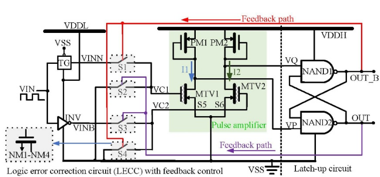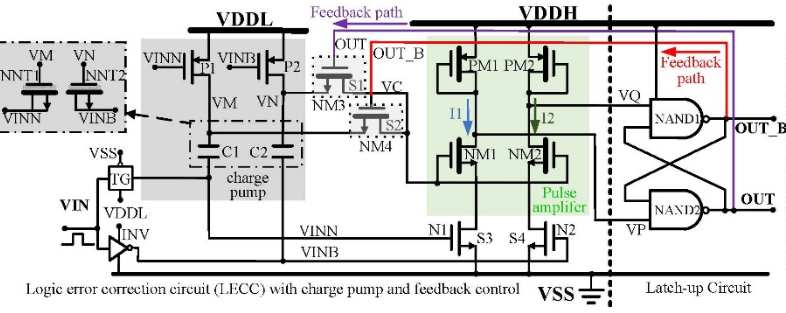 针对高精度传感器系统中低电压逻辑到高电压接口的电平转换难题,课题组提出 LS-CPFB 与 LS-FB 两款新型电平转换器(Level Shifter, LS)。