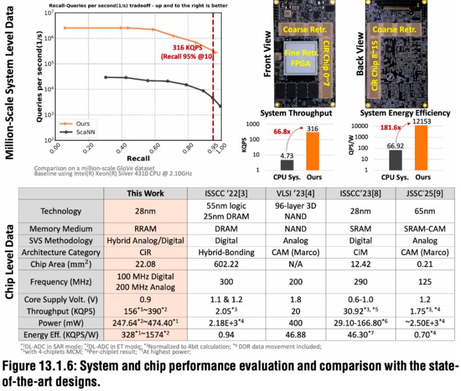 技术层面的突破也在同步发生。ISSCC 2026上,清华大学、华为与字节跳动联合团队在会上发布了一篇关于存内计算芯片的论文,引起业内关注。论文中首次提出基于28nm工艺的混合存内计算(Compute-in-Memory, CiM)芯片,这款芯片通过创新架构设计,将推荐系统核心运算的效率和能效提升1–2个数量级(QPS提升66倍,QPS/W提升181倍)。