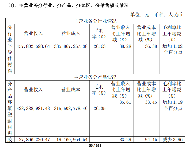 收入结构方面,环氧塑封料仍是第一增长曲线,实现收入4.28亿元,同比增长35.61%;胶黏剂收入2780.62万元,同比大幅增长94.45%,成为第二增长曲线;清润模材料作为年度新增产品,实现收入160.74万元,产品矩阵持续完善。