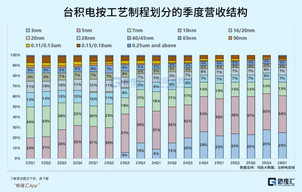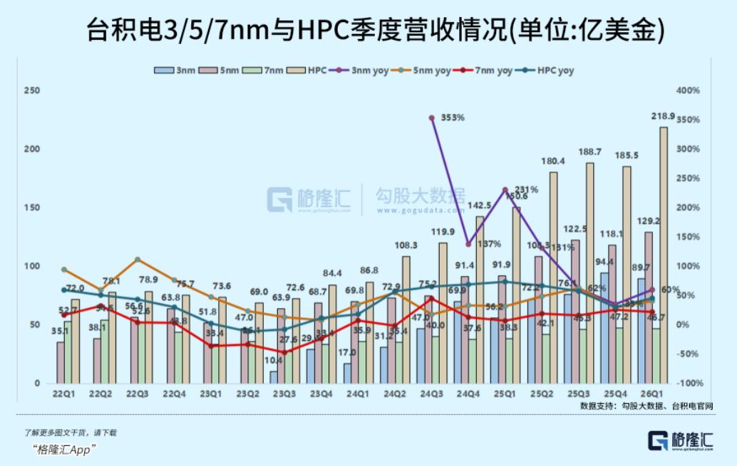 尽管3nm环比回落,但那是由于智能手机周期的季节性波动;同时5nm节点因为Blackwell系列等高性能计算(HPC)需求的爆发,稀释了3nm的占比。